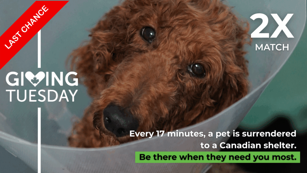 This Giving Tuesday, help pets stay with their families — and support those waiting to find their new homes. Your gift will be matched up to $10,000, doubling your impact for animals in need of care, compassion, and a fresh start. Donate online or call us at (416) 392-2273 ext. 2162.