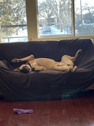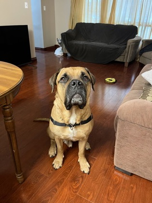 HK is a big, goofy 100-pound sweetheart who truly believes he's a lap dog! This gentle giant has a heart as big as his paws and is always ready to make you smile with his silly antics and affectionate personality.