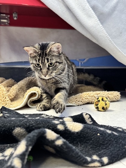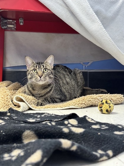 Blitzen isn't a cat who rushes into interaction, and she doesn't ask for immediate affection. Instead, she communicates in quiet ways and appreciates having her space respected. With patience and a calm environment, she shows that she's capable of warming up and engaging on her own terms. She would do best in a peaceful home with someone who understands that trust is built gradually and is happy to let her set the pace.