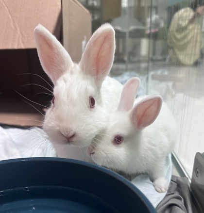 Snow and Nive are a bonded pair of rabbits who share a close, heart-melting connection. These two love to explore side by side, following each other everywhere and staying close for comfort and companionship. Nive often takes his cues from Snow, making them a wonderfully in-sync pair.