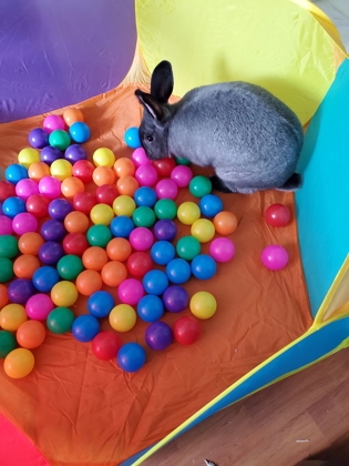 Huckleberry is a big, beautiful rabbit who knows exactly what she wants. She loves her food and she loves to relax. To avoid startling her, it's best to approach her space slowly and calmly, speaking softly as you enter.