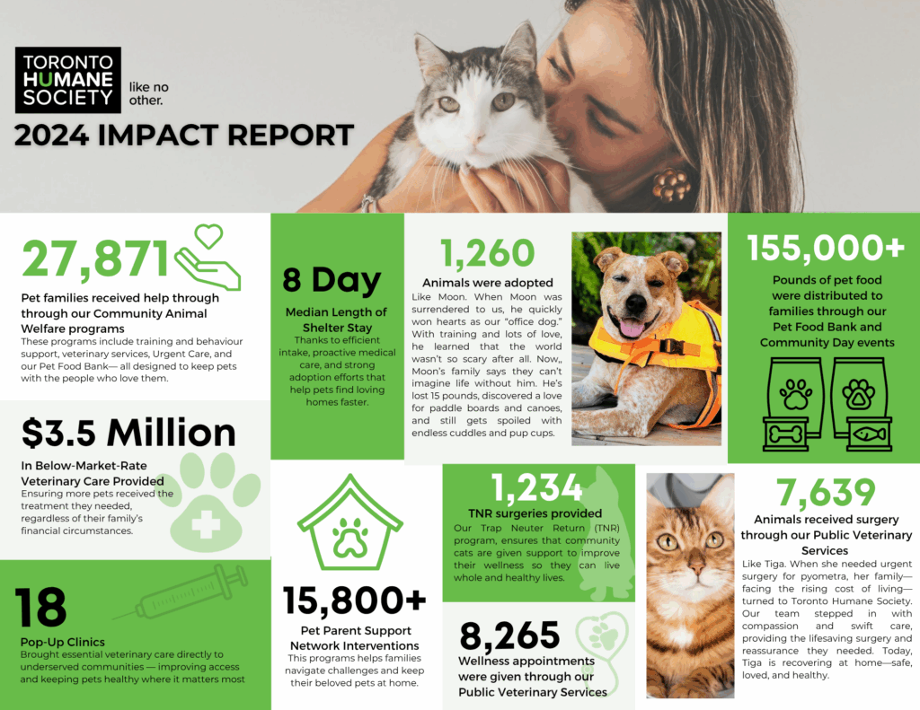 From measurable results to success stories, here’s a glance at how Toronto Humane Society’s programs are making a very real impact on animals and the animal-loving community.